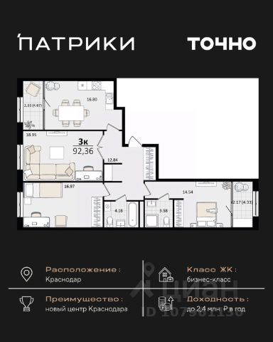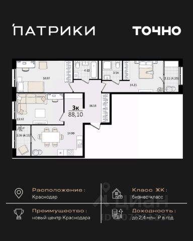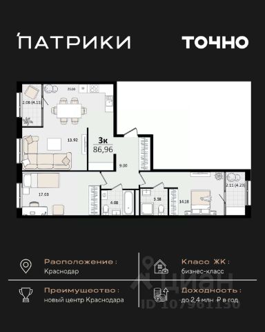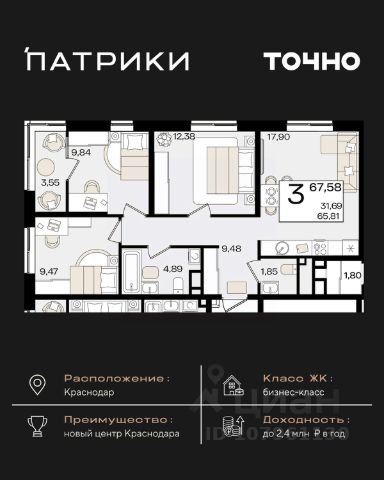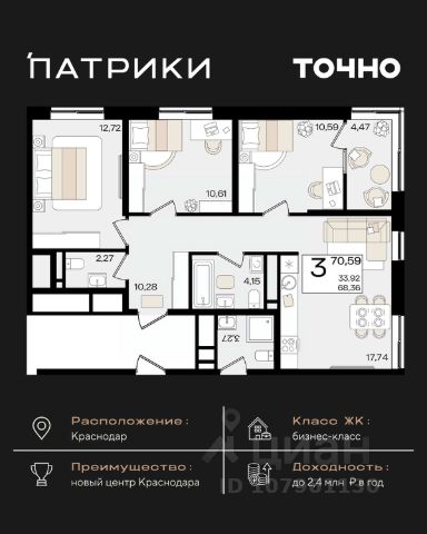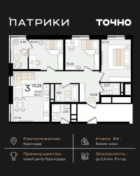 Флагманский проект группы компаний Точно - жилой комплекс бизнес-класса Патрики, это 10 домов разной этажности расположившихся на 28,5 гектарах. Жилой комплекс с концепцией город в город - прогулочные аллеи, парковая территория, 3 детских сада, 2 школы - одна из которых частная, Гранд аллея с ресторанами, фонтанами и модными бутиками, уникальные мафы и ландшафтный дизайн, создают особую атмосферу - место в котором хочется находиться. В Патриках предусмотрен и креативный кластер Цех, который включает в себя пространство для коворкинга, фудкорт, бутики, детский комплекс, лектории, фитнес-клуб Баланс с волной для сёрфа. Но и это еще не все ГК Точно уважает историю, поэтому мы сохранили 2 башни - наследство от завода "Сельмаш" исторический арт-объект назвали Мастер и Маргарита.