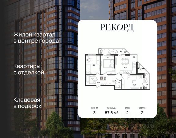 В продаже 3-к квартира от застройщика! ЖК "Рекорд" 2 очередь, г. Краснодар, Литер 2. Срок сдачи: 2 кв. 2026, общей площадью 87.8 кв.м., на 2 этаже. Жилой Комплекс "РЕКОРД" - место вашего баланса. Город снаружи природа внутри. Квартал с максимумом возможностей для хорошо сбалансированной жизни. Расположен в оживленном благоустроенном районе города. Сочетает в себе и жилую застройку, и торгово-деловые центры. Здесь все под рукой, здесь центр городских событий. • Уникальная локация центр города • Современная архитектура • Панорамные виды • Элегантные входные группы • Архитектурная подсветка фасадов • Школа во дворе (1550 мест) • Детский сад во дворе (110 мест) • Двор без машин • Подземный паркинг и гостевые парковки • Круглосуточный пост охраны • Медицинский центр • Фитнес центр • Система "умный дом" • Баскетбольная и универсальная спортивные площадки • Современные развивающие детские игровые площадки • Ресторанный дворик с аллеей и фонтаном • Храм с уникальной архитектурой • Премиальные лифты с подсветкой и музыкой • Звукоизоляционные окна • Зарядные устройства для электромобилей • Ароматизация мест общего пользования • Элегантные входные группы • Дизайнерские лобби • Консьерж сервис • Сквозные подъезды • Кладовки • Кондиционирование холлов • Благоустройство территории с Арт объектом • Воркаут-зоны • Зона коворкинга Приобрести квартиру можно одним из способов: -субсидированная семейная ипотека -оплата наличными -дистанционная покупка Позвоните сейчас и забронируйте квартиру со скидкой!