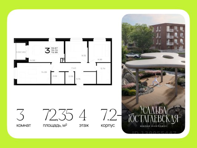 Продается 3-комнатная квартира площадью 62.70 кв. м без отделки, расположенная на 4 этаже, в новом жилом комплексе комфорт-класса "Кипарис". Прекрасный район, окруженный реликтовыми лесами и живописным рельефом гор. Адрес жилого комплекса - муниципальный округ Анапа, село Сукко, улица Мирная, дом 13.