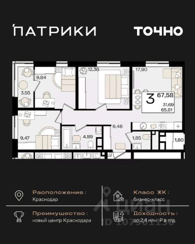 Продаётся 3-комнатная квартира в строящемся доме (Дом 100/8), срок сдачи: II-кв. 2026, общей площадью 92.57 кв.м., на 4 этаже. Новый жилой комплекс "Альфа" от застройщика "Телекомстрой" расположен по адресу город Краснодар, Уральская улица.