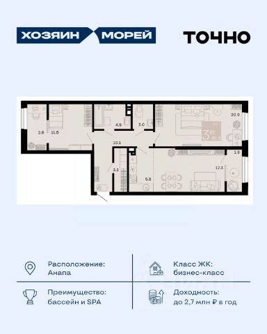 Продается невероятный пентхаус с захватывающим видом на море в ЖК Анаполис! Ваш новый дом — это не просто жилье, это настоящее произведение искусства!Представьте себе: каждое утро вы просыпаетесь, и первое, что вы видите — это бескрайний горизонт, где море встречается с небом. С террасы открывается панорама, которая завораживает и вдохновляет. Вы можете наслаждаться утренним кофе, наблюдая, как первые лучи солнца касаются воды, создавая волшебные блики, которые заполняют ваше сердце радостью!Основные характеристики: