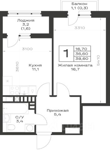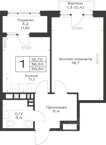 • Санузел под ключ: ванна с декоративным экраном, удобная раковина, смесители, полотенцесушитель. На полу керамогранит.