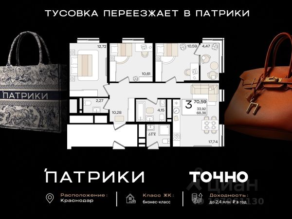 Продаётся 3-комнатная квартира в строящемся доме (Дом 100/8), срок сдачи: II-кв. 2026, общей площадью 92.54 кв.м., на 6 этаже. Новый жилой комплекс "Альфа" от застройщика "Телекомстрой" расположен по адресу город Краснодар, Уральская улица.