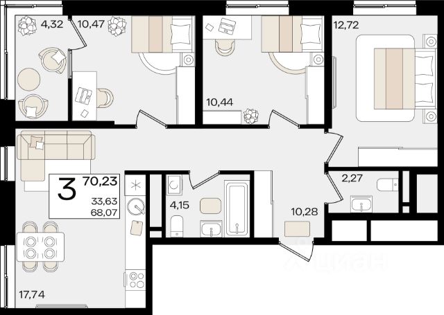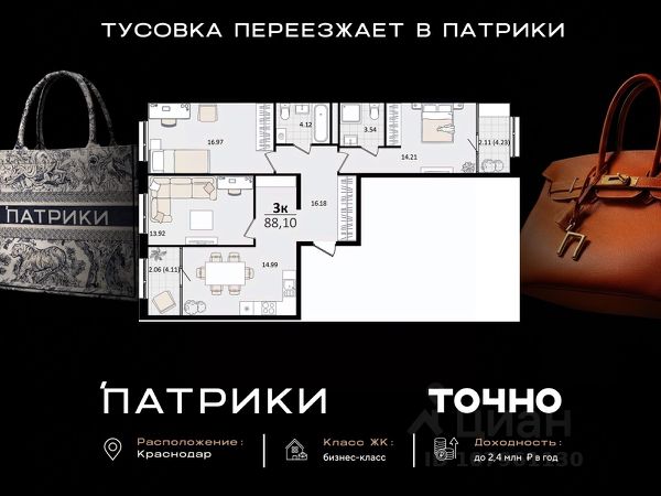 Продается уютная трехкомнатная квартира в современном жилом комплексе на ул. Казбекской. Фестивальный микрорайон. Общая площадь квартиры составляет 75 кв. м, из которых 50 кв. м жилая. Кухня просторная, площадью 10.5 кв. м. Квартира находится на 14 этаже 17-этажного монолитного дома, построенного в 2014 году. Высота потолков 2.85 метра, что редкость для современного строительства.