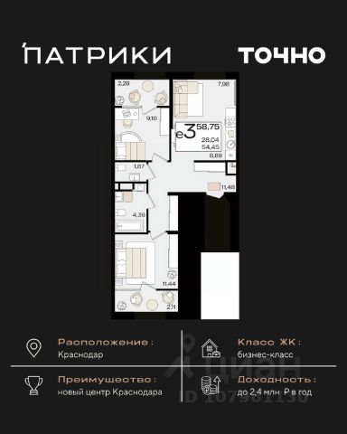 Квартира общей площадью 81,6 кв. м, расположена на 6 этаже 23-этажного элитного жилого дома ЖК На Крепостной.