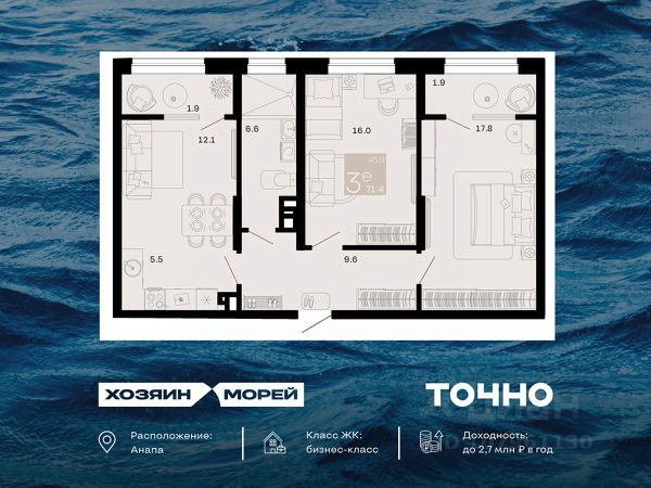 Продаётся 3-комнатная квартира в строящемся доме (поз.8), срок сдачи: II-кв. 2026, общей площадью 62.7 кв.м., на 7 этаже. Новый жилой комплекс "Кипарис" от застройщика "AVA" расположен по адресу: Россия, Краснодарский край, муниципальный округ Анапа, село Сукко, Мирная улица