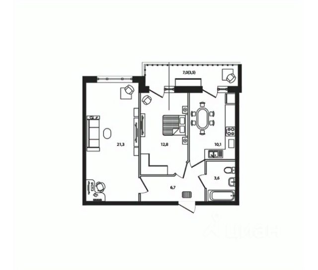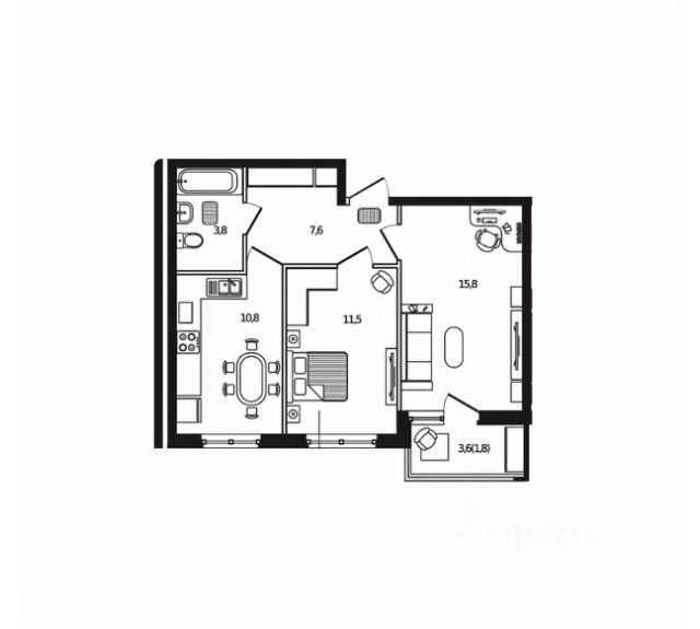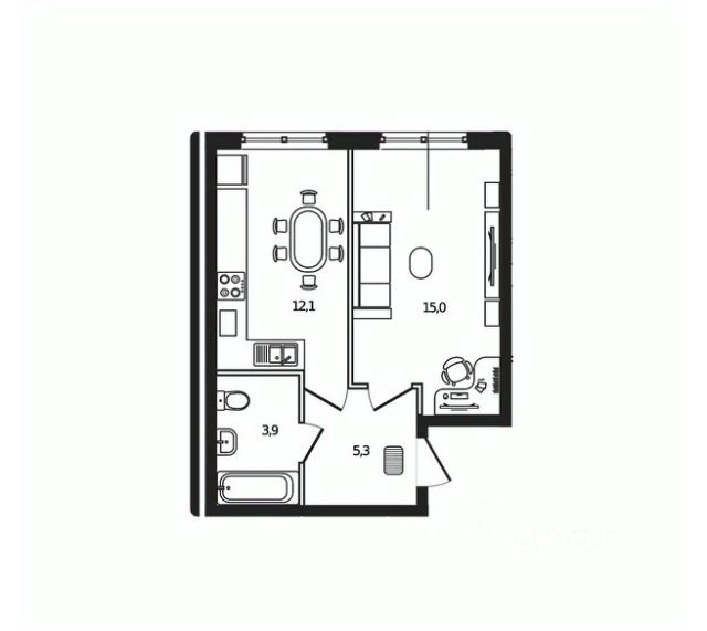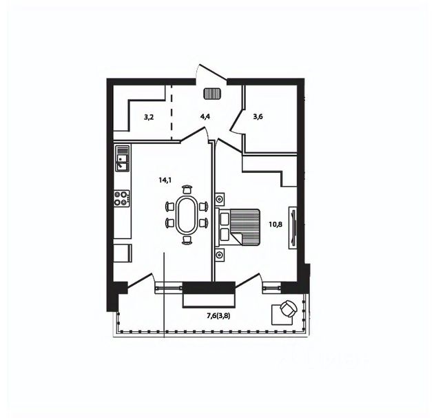 *Площадь:* 41,5 м² (кухня 12,5 м² + комната 16 м² + лоджия 5 м²)