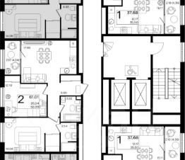 Квартира состоит из трёх комнат: зал 26 м2, комната 17.9 м2, спальня 12.8 м2, кухня 12.6 м2 с выходом на застеклённую лоджию 5.5 м2, прихожая и коридор 14.6 м2, сан. узел 2 м2, ванная комната 4.4 м2, согласитесь очень приятные характеристики !