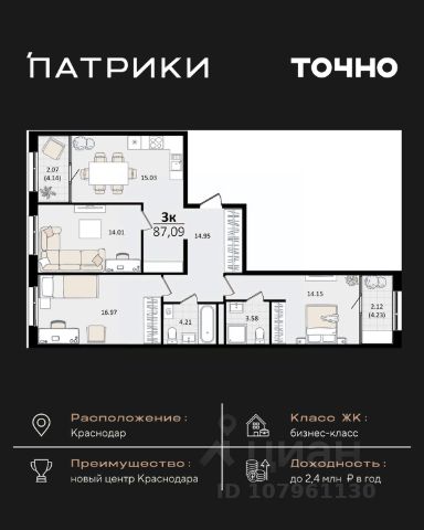 В продаже 3-комнатная квартира от застройщика! ЖК "Рекорд" 2 очередь, г. Краснодар, Литер 2 Срок сдачи: 4 кв. 2026, общей площадью 98.3 кв.м., на 8 этаже. Жилой Комплекс "РЕКОРД" - место вашего баланса. Город снаружи природа внутри. Квартал с максимумом возможностей для хорошо сбалансированной жизни. Расположен в оживленном благоустроенном районе города. Сочетает в себе и жилую застройку, и торгово-деловые центры. Здесь все под рукой, здесь центр городских событий. • Уникальная локация центр города • Современная архитектура • Панорамные виды • Двухуровневые квартиры с камином и террасой • Элегантные входные группы • Архитектурная подсветка фасадов • Школа во дворе (1550 мест) • Детский сад во дворе (110 мест) • Двор без машин • Подземный паркинг и гостевые парковки • Круглосуточный пост охраны • Медицинский центр • Фитнес центр • Система "умный дом" • Баскетбольная и универсальная спортивные площадки • Современные развивающие детские игровые площадки • Ресторанный дворик с аллеей и фонтаном • Храм с уникальной архитектурой • Премиальные лифты с подсветкой и музыкой • Звукоизоляционные окна • Зарядные устройства для электромобилей • Ароматизация мест общего пользования • Элегантные входные группы • Дизайнерские лобби • Консьерж сервис • Сквозные подъезды и доступ по Face ID • Кладовки • Кондиционирование холлов • Благоустройство территории с Арт объектом • Воркаут-зоны • Зона коворкинга • Wi-fi и USB розетки на всей территории двора Приобрести квартиру можно одним из способов: -субсидированная семейная ипотека 4,5 % на весь срок -рассрочка до конца строительства -оплата наличными -дистанционная покупка Позвоните сейчас и забронируйте квартиру со скидкой!