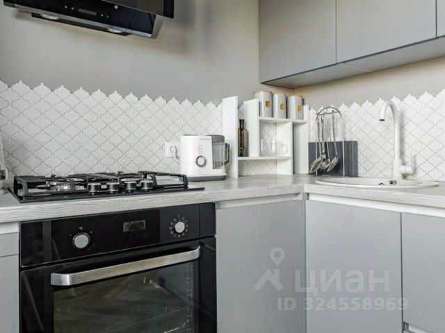 Кухня. Угловая кухня выполнена под заказ, фасады шкафов AGT, посудомоечная машина, встроенный холодильник, варочная поверхность, духовой шкаф, вытяжка. Установлены сплит-системы Kentatsu. Есть место под телевизор в каждой жилой комнате.