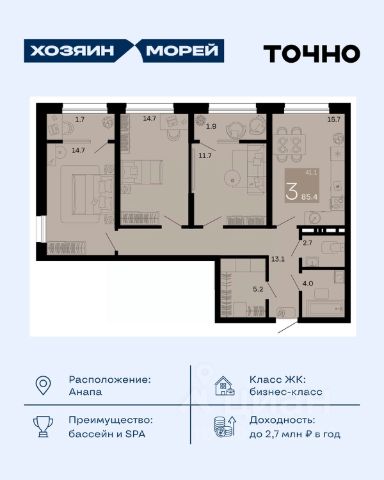 Жилой комплекс включает в себя корпуса высотой от 8 до 12 этажей. Дома возведены по качественной монолитной технологии строительства, с использованием комбинированных фасадов. В здании выполнена дизайнерская отделка входных групп и установлены современные скоростные лифты. В проекте предложено множество планировочных решений классического типа: от уютных студий до просторных 3-ех комнатных квартир. Сдаются они с подчистовой отделкой, панорамными окнами и высотой потолков 2,7 метра. Территория комплекса благоустроена и озеленена. Во дворе спроектированы безопасные детские и спортивные площадки с тренажерами и многофункциональными воркаут-комплексами, предусмотрены зоны отдыха и барбекю, а также зона для выгула собак. На территории комплекса возведена школа и 2 детских сада. Для владельцев автомобилей предусмотрен подземный паркинг. Жилой комплекс расположен в развитом районе города, где есть вся необходимая инфраструктура. Недалеко от комплекса располагаются торговые центры, аптеки, пункты выдачи заказов, школы, детские сады, а также поликлиники. До центра Анапы можно добраться за 10 минут транспортом.