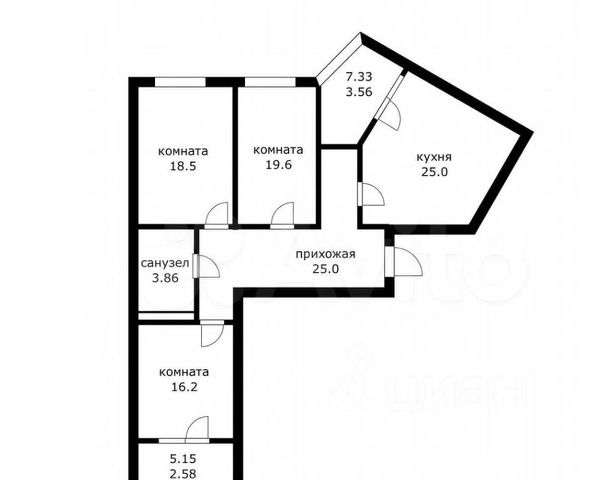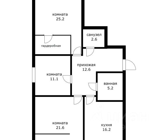 Общая площадь 128, 79 кв. м.: кухня-гостиная 22, 78 кв. м., спальня 1 32, 32 кв. м., спальня 2 26, 05 кв. м., спальня 3 24, 34 кв. м., коридор 15, 8 кв. м., ванная комната 7, 5 кв. м.