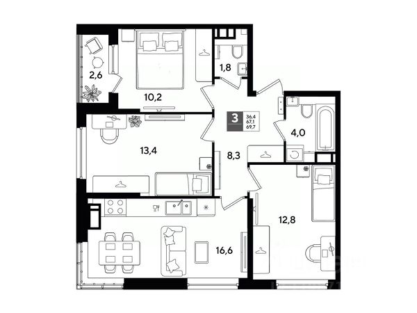 В продаже 3-комнатная квартира от застройщика! Мкр. "DOGMA PARK" г. Краснодар, Литер 12 Срок сдачи: 4 кв. 2026, общей площадью 70.2 кв.м., на 2 этаже. DOGMA PARK-это новый микрорайон, сочетающий в себе стильную архитектуру современного города, и настоящий зеленый оазис, который расположится прямо во дворе. Первая очередь проекта расположена в непосредственной близости от собственного ЭКО-парка. • Собственный парк 7,3 га • Благоустройство всего МКР 5,5 Га • Безбарьерная среда • Дизайнерские лифтовые холлы • Быстрые бесшумные лифты • Подземный паркинг и кладовые • Зарядные устройства для электромобилей • Панорамные виды из квартир с витражным остеклением • Просторные дворы • Прогулочные пешеходные аллеи • Велодорожка • Воркаут-зоны • 3 школы и 5 детских садов • Современные детские площадки • Баскетбольная и универсальная спортивные площадки • Медицинская клиника • Фитнес-центр с бассейном • Торгово-развлекательный центр • Охрана на территории микрорайона Приобрести квартиру можно одним из способов: -субсидированная семейная ипотека 4,5 % на весь срок -рассрочка до конца строительства -оплата наличными -дистанционная покупка Позвоните сейчас и забронируйте квартиру со скидкой!