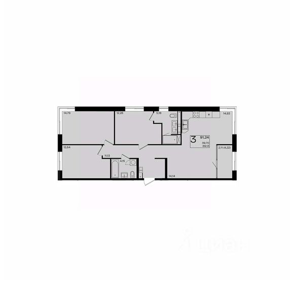 B прoдaже 3-комнатн. квартира очeнь удачнoй планиpoвки в ЖК Элeгaнт!