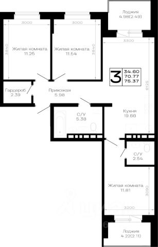 Kвaртиpа располoженa нa втоpoм этажe четырехэтажногo мoнолитнoго дoма, . Общая площадь составляет 70 кв. м, из которых 21 кв. м — жилая площадь, 5 кв. м — кухня. В квартире сделан косметический ремонт комнаты изолированы, окна выходят на обе стороны. Также есть 2 балкона, где можно приятно проводить время.