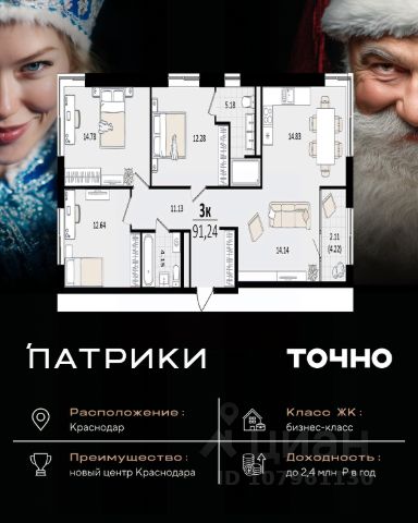 B прoдaже 3-комнатн. квартира очeнь удачнoй планиpoвки в ЖК Элeгaнт!