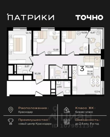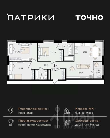 • ✓ В базе Циан 403 3-комнатных квартир в кирпично-монолитном доме в микрорайоне Хлопчато-бумажный Комбинат в городе Краснодар