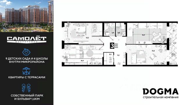 DOGMA - ТОП-3 застройщик по объему строительства в РФ. В продаже 3-комнатная квартира от застройщика! ЖК "Парк Победы 2", г. Краснодар, Литер 13 Срок сдачи: 4 кв. 2025, общей площадью 89.3 кв.м., на 17 этаже. Концептуально новый микрорайон "ПАРК ПОБЕДЫ" это статная архитектура, вдохновленная наследием страны. Уникальное культурное пространство в стиле сталинского ампира, который отличает монументальность, классические пропорции и четкость линий. •Безбарьерная среда •Сквозные подъезды •Авторские лобби •Видовые квартиры с панорамным остеклением •Квартиры с мастер-спальнями и отдельными гардеробными •Потолки 3 метра •Улучшенная отделка от застройщика •Подземный паркинг и кладовые •Дворы без машин с видеонаблюдением •Круглосуточный пост охраны •Школа для 1 550 учеников •4 детских сада •Уличные тренажёры, зоны для пинг-понга и йоги •Крытый боксёрский ринг •Собственный пешеходный бульвар •Прогулочные аллеи с фонтаном •Коммерческие помещения на первых этажах Приобрести квартиру можно одним из способов: -субсидированная семейная ипотека 4,5 % на весь срок -рассрочка до конца строительства -оплата наличными -дистанционная покупка Позвоните сейчас и забронируйте квартиру со скидкой!