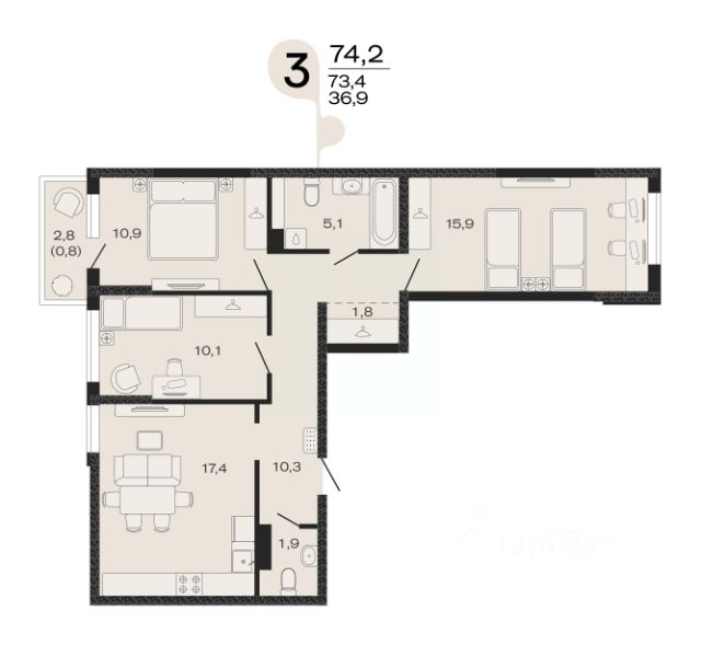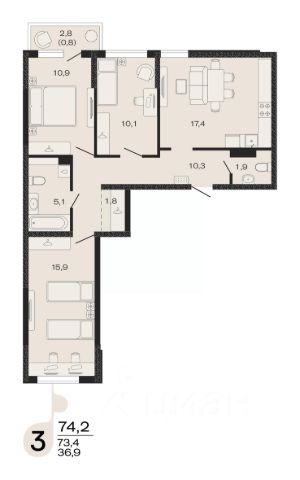 • ✓ В базе Циан 36 3-комнатных квартир в кирпично-монолитном доме в Новокубанском районе Краснодарского края