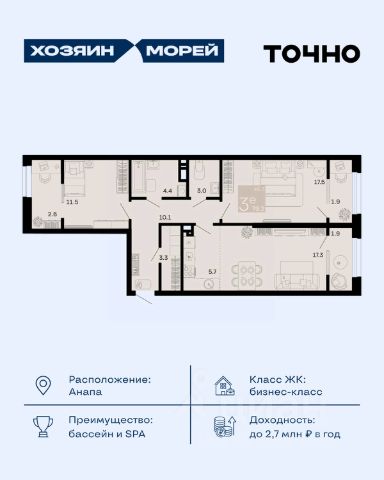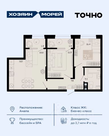 Жилой комплекс включает в себя корпуса высотой от 8 до 12 этажей. Дома возведены по качественной монолитной технологии строительства, с использованием комбинированных фасадов. В здании выполнена дизайнерская отделка входных групп и установлены современные скоростные лифты. В проекте предложено множество планировочных решений классического типа: от уютных студий до просторных 3-ех комнатных квартир. Сдаются они с подчистовой отделкой, панорамными окнами и высотой потолков 2,7 метра. Территория комплекса благоустроена и озеленена. Во дворе спроектированы безопасные детские и спортивные площадки с тренажерами и многофункциональными воркаут-комплексами, предусмотрены зоны отдыха и барбекю, а также зона для выгула собак. На территории комплекса возведена школа и 2 детских сада. Для владельцев автомобилей предусмотрен подземный паркинг. Жилой комплекс расположен в развитом районе города, где есть вся необходимая инфраструктура. Недалеко от комплекса располагаются торговые центры, аптеки, пункты выдачи заказов, школы, детские сады, а также поликлиники. До центра Анапы можно добраться за 10 минут транспортом.