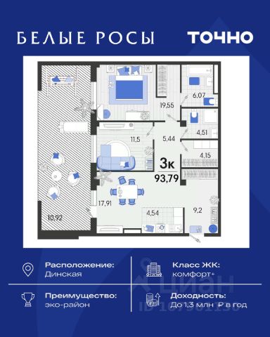 Проект включает в себя 4 корпуса в едином архитектурном стиле. Дома спроектированы в классическом европейском стиле с использованием светло-бежевого кирпича в облицовке фасадов. Входные группы каждого дома оборудованы остекленными дверьми витражного типа с чиповыми замками и домофоном. На всей территории комплекса разработана безбарьерная среда. Также все подъезды оборудованы автоматическими подъемниками для людей с ограниченными возможностями. В ЖК предложено множество планировочных решений: в наличии квартиры, как классического типа, так и европланировки. Они сдаются с подчистовой отделкой и высотой потолков 2,75 - 3 метра. На территории комплекса находится детский сад. На первых этажах корпусов предусмотрены коммерческие помещения. Дворы благоустроены: организованы прогулочные аллеи, свободные от машин, установлены детские и спортивные площадки. ЖК возводится в станице Динская. На маршрутке или автобусе можно быстро добраться в центр станицы или в Краснодар. Дорога до центральной части Динской займет около 10 минут, там можно провести время в кинотеатре или торговом центре, купить продукты на фермерском рынке, погулять с ребенком в детском парке.