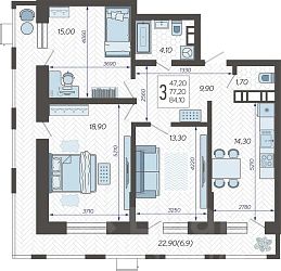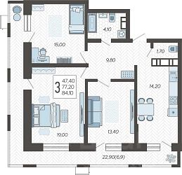 Продаётся 3-комнатная квартира в сданном доме (Литер 5), срок сдачи: IV-кв. 2024, общей площадью 84.1 кв.м., на 10 этаже. Новый жилой комплекс "Небо" от застройщика "АСК" расположен по адресу город Краснодар, Ярославская улица.