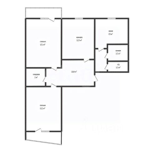 Общая площадь 69,2 м2, кухня 7,9 м2, жилая площадь 42,2 м2 17,1+12,9+12,2, раздельный санузел, застекленные лоджия и балкон.
