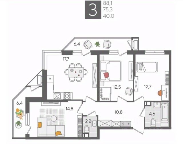 Продаётся 3-комнатная квартира в сданном доме (Дом 47/35), срок сдачи: III-кв. 2023, общей площадью 105.57 кв.м., на 2 этаже. Жилой комплекс "Фонтаны" - дом клубного типа. Преимущество заключается в продуманном ландшафте дворов, круглосуточно охраняемой территории, системе видеонаблюдения во дворе. Также для удобства жителей проведен Wi-Fi во дворе, оборудованы безопасные и современные детские площадки, зоны отдыха. ЖК "Фонтаны" расположен в микрорайоне Черёмушки. Отличная транспортная развязка позволяет быстро и с комфортом добраться до центра, а большое количество зеленых насаждений и парков дает возможность гулять с детьми и наслаждаться прекрасным видом на Кубань. Планировки квартир от студий до просторных четырехкомнатных позволяют воплотить неповторимые дизайнерские проекты. А панорамное остекление дарит потрясающие виды на реку Кубань. В проекте жилого комплекса предусмотрены все нюансы. Если в вашей семье есть маленькие дети, на первом этаже размещены комнаты для хранения колясок. Современные пассажирский и грузовой лифты позволяют жителям не только передвигаться самостоятельно, но и без труда и безопасно доставлять до нужных этажей строительные материалы во время ремонта. "Фонтаны" дарит тепло своим жителям. А все потому, что для комплекса оборудована технологичная котельная, которая не вредит окружающей среде. Не возникнет проблем с подачей энергии - электрические сети надежны и высокоэффективны. Еще одно преимущество комплекса - вентилируемый фасад, используемый в строительстве. Такие технологии не только удерживают тепло в доме, но и обладают высокой шумоизоляцией. Вентилируемые фасады - долговечная система, которая не требует ремонта на протяжении многих лет. Купить 3-комнатную квартиру в микрорайоне Черемушки в городе Краснодар.