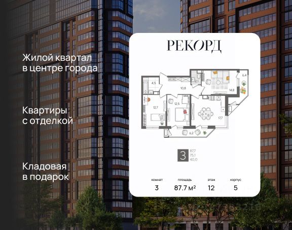 В продаже 3-к квартира от застройщика! ЖК "Рекорд" 2 очередь, г. Краснодар, Литер 4. Срок сдачи: 2 кв. 2026, общей площадью 91.5 кв.м., на 3 этаже. Жилой Комплекс "РЕКОРД" - место вашего баланса. Город снаружи природа внутри. Квартал с максимумом возможностей для хорошо сбалансированной жизни. Расположен в оживленном благоустроенном районе города. Сочетает в себе и жилую застройку, и торгово-деловые центры. Здесь все под рукой, здесь центр городских событий. • Уникальная локация центр города • Современная архитектура • Панорамные виды • Элегантные входные группы • Архитектурная подсветка фасадов • Школа во дворе (1550 мест) • Детский сад во дворе (110 мест) • Двор без машин • Подземный паркинг и гостевые парковки • Круглосуточный пост охраны • Медицинский центр • Фитнес центр • Система "умный дом" • Баскетбольная и универсальная спортивные площадки • Современные развивающие детские игровые площадки • Ресторанный дворик с аллеей и фонтаном • Храм с уникальной архитектурой • Премиальные лифты с подсветкой и музыкой • Звукоизоляционные окна • Зарядные устройства для электромобилей • Ароматизация мест общего пользования • Элегантные входные группы • Дизайнерские лобби • Консьерж сервис • Сквозные подъезды • Кладовки • Кондиционирование холлов • Благоустройство территории с Арт объектом • Воркаут-зоны • Зона коворкинга Приобрести квартиру можно одним из способов: -субсидированная семейная ипотека -оплата наличными -дистанционная покупка Позвоните сейчас и забронируйте квартиру со скидкой! Купить 3-комнатную квартиру в микрорайоне Черемушки в городе Краснодар.