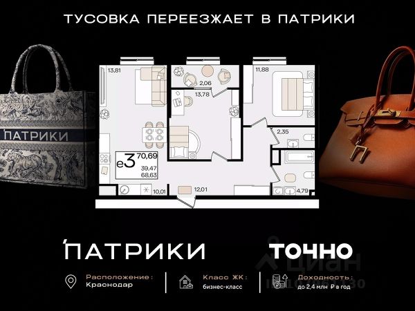 Общая площадь 60.4. С балконом и лоджией 66.4.