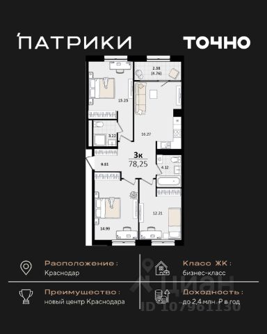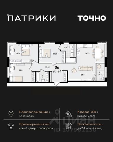 Жилой комплекс представляет собой 9 корпусов высотой от 5 до 18 этажей. В оформлении фасадов используются облицовочный кирпич. Во всех домах выполнена дизайнерская отделка входных групп и установлены современные лифты. В каждом корпусе спроектированы места для хранения колясок и велосипедов, в холле оборудована лапомойка для домашних животных. В проекте представлено множество планировочных решений: в наличии квартиры, как классического типа, так и европланировки. Сдаются они с чистовой отделкой. Высота потолков — от 2,7 до 3 метров. На территории комплекса предусмотрены места для отдыха, аллеи и бульвары, детские и спортивные площадки. На первых этажах расположены коммерческие помещения. Для владельцев автомобилей спроектированы стоянка и отдельный многоуровневый паркинг. ЖК расположен в районе Хлопчато-бумажного комбината. В шаговой доступности готовые объекты социальной и спортивной инфраструктуры города: центры детского творчества, ледовый каток, концертный зал, образовательные учреждения и детские сады, торговые центры, парки, медицинские учреждения. До центра города 20 минут транспортом. Купить 3-комнатную квартиру в микрорайоне Хлопчато-бумажный Комбинат в городе Краснодар.