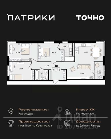 Жилой комплекс представляет собой 9 корпусов высотой от 5 до 18 этажей. В оформлении фасадов используются облицовочный кирпич. Во всех домах выполнена дизайнерская отделка входных групп и установлены современные лифты. В каждом корпусе спроектированы места для хранения колясок и велосипедов, в холле оборудована лапомойка для домашних животных. В проекте представлено множество планировочных решений: в наличии квартиры, как классического типа, так и европланировки. Сдаются они с чистовой отделкой. Высота потолков — от 2,7 до 3 метров. На территории комплекса предусмотрены места для отдыха, аллеи и бульвары, детские и спортивные площадки. На первых этажах расположены коммерческие помещения. Для владельцев автомобилей спроектированы стоянка и отдельный многоуровневый паркинг. ЖК расположен в районе Хлопчато-бумажного комбината. В шаговой доступности готовые объекты социальной и спортивной инфраструктуры города: центры детского творчества, ледовый каток, концертный зал, образовательные учреждения и детские сады, торговые центры, парки, медицинские учреждения. До центра города 20 минут транспортом. Купить 3-комнатную квартиру в микрорайоне Хлопчато-бумажный Комбинат в городе Краснодар.