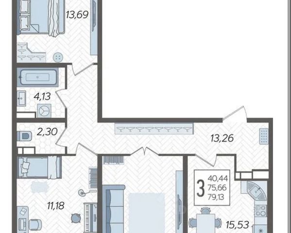 — Функциональная планировка: кухня 8,5 м², жилая площадь 37,9 м². Высота потолков 2,6 м. Изолированные комнаты