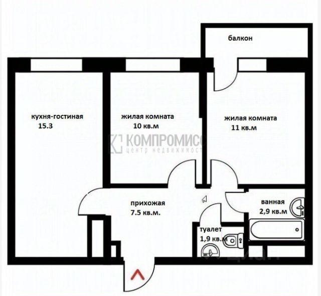 Площадь квартиры с лоджией 65,3 кв. м, комнаты изолированные 15+13,6 кв.м, потрясающая кухня-гостиная площадью 18,2 кв.м, раздельный сан/узел, утепленная и остекленная лоджия.