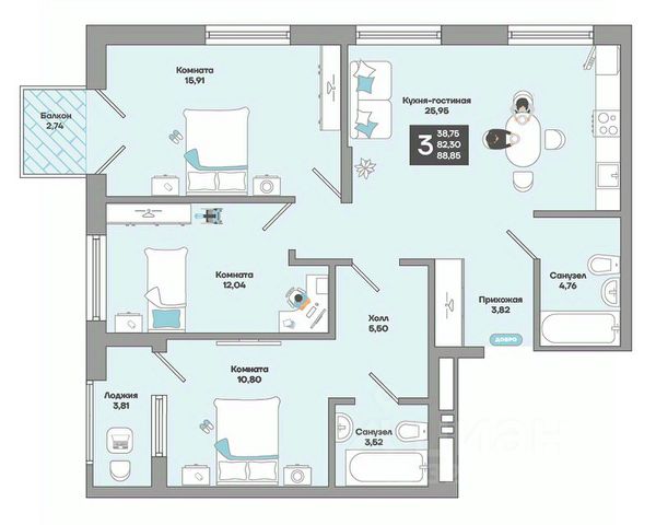 Ко времени сдачи в эксплуатацию их стоимость весьма и весьма возрастет! Продам 3-комнатную квартиру на улице Душистая в городе Краснодар.