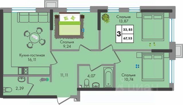 3-комнатная квартира с умной планировкой в жилом комплексе Зеленая территория от надежного застройщика СЗ Флагман в Краснодаре. Покупка квартиры в ЖК Зелёная территория это : дворы без машин с большими детскими площадками; баланс природы и городской среды; библиотека, конгресс-центр, фитнес-центр; много парковочных мест, наземная многоуровневая парковка; выделенная велосипедная дорожка на длинной прогулочной аллее в собственном закрытом от посторонних парке; зарядные станции для автомобилей; спортивные площадки для детей и взрослых; собственный парк на территории комплекса - 1,2 Га; ТРК Красная площадь, Леруа Мерлен - 10 минут на машине; школа в 2 минутах ходьбы от дома; 3 минуты до детского сада; рядом находятся ледовый дворец Iсе Раlасе, спортивный комплекс "Баскет Холл", школа ЦСК и теннисные корты; выезд на Ейское шоссе - дорога на море за час без пробок. За более чем 20 лет группа компаний Флагман построила: 9 ЖК, 4 200 квартир 24 многоэтажных дома 2 коттеджных посёлка 7 коммерческих БЦ Подберите 3-комнатную квартиру по вашим параметрам в ЖК Зелёная территория от застройщика СЗ Флагман. Звоните или нажимайте Заказать звонок - мы сформируем подборку планировок, просчитаем стоимость ежемесячного платежа и пришлем вам.