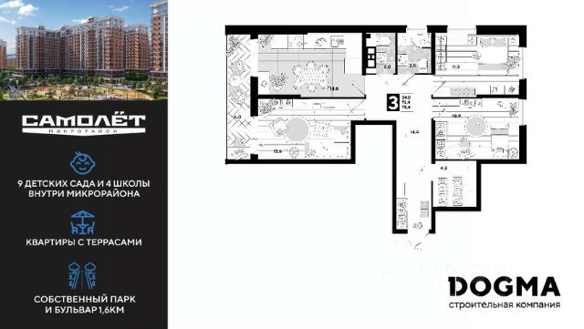 DOGMA - ТОП-3 застройщик по объему строительства в РФ. В продаже квартира-студия от застройщика! Мкр. "Самолет" 4 очередь, г. Краснодар, Литер 24 Срок сдачи: 2 кв. 2023, общей площадью 30.7 кв.м., на 12 этаже. "САМОЛЁТ" — концептуальный жилой микрорайон, который расположен на северо-западе Краснодара, в районе Западного Обхода. Квартал спроектирован как "город в городе", поэтому здесь будет всё для комфортной жизни: современные дома с разными планировками, дороги, школы и детские сады, поликлиника, торговые центры, парки и аллеи. Микрорайон находится далеко от промышленных предприятий, сочетает удобство городской жизни и экологически благоприятную среду. Инфраструктура нового микрорайона: • Видовые квартиры с панорамным остеклением • Безбарьерная среда • Просторные стильные лобби • Сквозные подъезды • Квартиры с террасами • Улучшенная отделка от застройщика • Подземный паркинг и кладовые • Видеонаблюдение и круглосуточный пост охраны • 9 детских садов • 4 школы в шаговой доступности • Кольцевая велодорожка • Аллея спорта • Собственный пешеходный бульвар 1,6 км • Дубовая аллея • 11 павильонов фудкорта • Светомузыкальный пешеходный фонтан протяжённостью 55 м • Торговые галереи • Храм сорока Севастийских мучеников • Скейт-парк • Детская акваплощадка • Детский городок • Крытая зона для бокса и единоборств • Площадки для выгула собак • 9 остановок городского транспорта • Дороги-дублёры Приобрести квартиру можно одним из способов: -субсидированная семейная ипотека 4,5 % на весь срок -рассрочка до конца строительства -оплата наличными -дистанционная покупка Позвоните сейчас и забронируйте квартиру со скидкой!