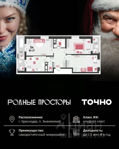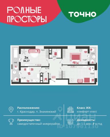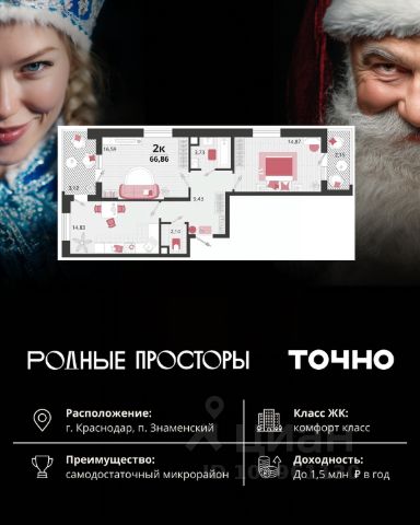 Продается квартира-студия в Жилом комплексе "Родные просторы"! В квартире выполнена качественная предчистовая отделка: Выровненные и подготовленные для отделки финишными материалами стены — улучшенная штукатурка стен. Подготовленный к укладке покрытия пол — стяжка пола. Коммуникации, выведенные в специальных местах в санузлах и кухонной зоне. Металлические входные двери с внутренней фрезеровкой и 2 замками. Металлопластиковые окна с долговечной фурнитурой. Радиаторы со встроенными терморегуляторами. Гидроизоляция пола санузлов. Крутая комплексная застройка территории с развитой инфраструктурой - на территории комплекса расположены школа на 1550 мест, 3 детских сада на 800 мест, поликлиника и частные клиники. На первых этажах домов расположены коммерческие помещения. Дворы свободны от автомобилей. Для автовладельцев предусмотрено более 2000 мест на открытых парковках по периметру микрорайона, и многоуровневые крытые наземные паркинги. Большая часть микрорайона оборудована пешеходными зонами и благоустроенными придомовыми территориями со спортивными площадками и большими детскими игровыми пространствами. Вся инфраструктура района находится в пешей доступности и располагаться внутри микрорайона. Рядом трасса М-4 - удобный выезд в сторону моря! Звоните прямо сейчас и покупайте квартиру в классном жилом комплексе!
