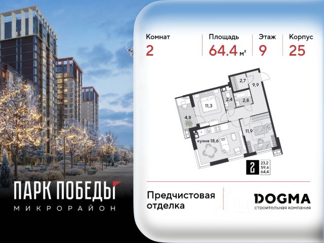 В продаже 3-комнатная квартира от застройщика! ЖК "Парк Победы 2", г. Краснодар, Литер 7 Срок сдачи: 3 кв. 2026, общей площадью 89.3 кв.м., на 18 этаже. Концептуально новый микрорайон "ПАРК ПОБЕДЫ" - это статная архитектура, вдохновленная наследием страны. Уникальное культурное пространство в стиле сталинского ампира, который отличает монументальность, классические пропорции и четкость линий. •Безбарьерная среда •Сквозные подъезды •Авторские лобби •Видовые квартиры с панорамным остеклением •Квартиры с мастер-спальнями и отдельными гардеробными •Потолки 3 метра •Улучшенная отделка от застройщика •Подземный паркинг и кладовые •Дворы без машин с видеонаблюдением •Круглосуточный пост охраны •Школа для 1 550 учеников •4 детских сада •Уличные тренажёры, зоны для пинг-понга и йоги •Крытый боксёрский ринг •Собственный пешеходный бульвар •Прогулочные аллеи с фонтаном •Коммерческие помещения на первых этажах Приобрести квартиру можно одним из способов: -субсидированная семейная ипотека 4,5 % на весь срок -рассрочка до конца строительства -оплата наличными -дистанционная покупка Позвоните сейчас и забронируйте квартиру со скидкой!