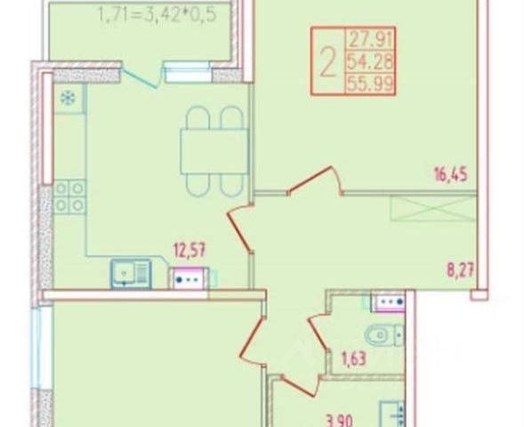 Общая площадь 32,2 кв.м.