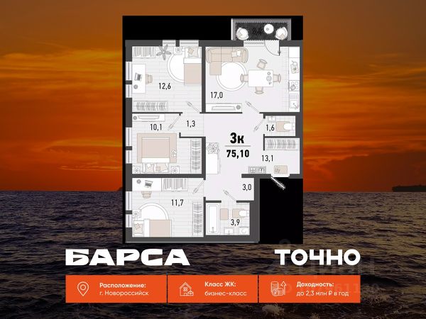 Проект включает в себя 2 дома высотой 18-21 этаж. В подъездах выполнена дизайнерская отделка в светлой цветовой гамме, для удобства жителей в местах общего пользования предусмотрена навигация. В каждой секции предусмотрены помещения для хранения велосипедов и колясок с обустроенным местом для мойки колес и лап домашних животных. Покупателям в ЖК предложено множество планировочных решений: в наличии квартиры, как классического типа, так и европланировки. На балконах и лоджиях выполнено витражное остекление. Из окон открывается шикарный вид на город и море. Квартиры сдаются без отделки. Двор комплекса закрыт от автомобилей и случайных прохожих. Для автовладельцев предусмотрен двухуровневый подземный паркинг на 650 мест. По всему периметру двора размещены видеокамеры. Внутренний двор благоустроен: предусмотрены пешеходные дорожки, скамейки и деревянные мини-беседки с розетками. Также спроектированы детские игровые площадки, уличные тренажеры и спортивная площадка для командных игр. Жилой комплекс расположен в южной части Новороссийска, на пересечении Мысхакского шоссе и улицы Куникова. Инфраструктура района развита: в пешей доступности детские сады, школы, аптеки и поликлиники, магазины и парки. Продается 3-комнатная квартира в новостройке без отделки в Краснодарском крае.