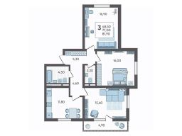В продаже 3-комнатная квартира площадью 80.5, расположенная Литер 4 жилого комплекса комфорт+ класса "Горный квартал". Комплекс от девелопера AVA находится в Сочи, Хостинского района, в 15 минутах езды от центра города.