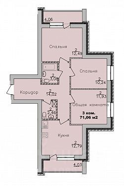Общая площадь с учетом лоджии: 64.5 кв.м.