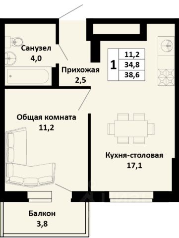 Продаётся 1-комнатная квартира в сданном доме (Литер 1), срок сдачи: I-кв. 2025, общей площадью 39.7 кв.м., на 18 этаже. Новый жилой комплекс "Огурцы" от застройщика "Партнер Инвест Кубань" расположен по адресу Краснодар, посёлок Берёзовый, Целиноградская улица.