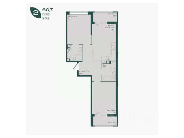 Продаётся 2-комнатная квартира в сданном доме (Литер 2), срок сдачи: I-кв. 2025, общей площадью 53.6 кв.м., на 2 этаже. Новый жилой комплекс "Огурцы" от застройщика "Партнер Инвест Кубань" расположен по адресу Краснодар, посёлок Берёзовый, Целиноградская улица.