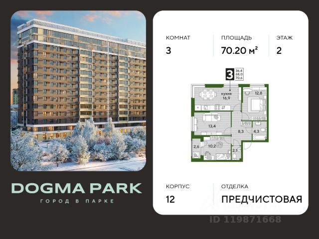 • От 8,9 млн руб. за 68,2 м² м², средняя цена 10,5 млн руб.