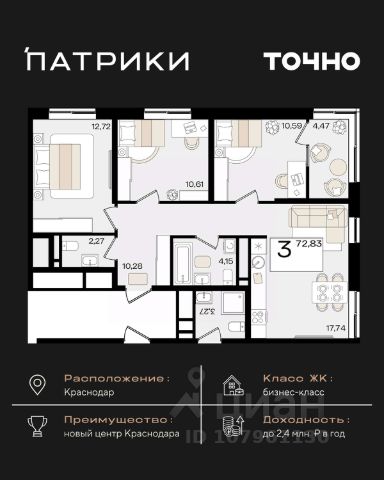Продаётся 3-комнатная квартира в сданном доме (Дом 80/1), срок сдачи: IV-кв. 2020, общей площадью 98.16 кв.м., на 2 этаже. Расположение, транспортная доступность