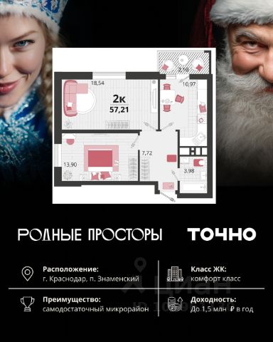 Жилой комплекс включает в себя 4 корпуса переменной этажности: от 7 до 9 этажей. Дома возведены по долговечной кирпично-монолитной технологии. Фасады облицованы кирпичом терракотового, желтого и белого оттенков. В ЖК сделана дизайнерская отделка входных групп, предусмотрен просторный уютный вестибюль, установлены современные скоростные лифты. На первых этажах расположены колясочные. В жилом комплексе предложено множество планировочных решений: в наличии квартиры, как классического типа, так и европланировки. Сдаются они с подчистовой отделкой и стандартными окнами. Высота потолков 2,7 метра, на первых этажах — 3,3 метра. На территории комплекса выполнено профессиональное озеленение, проложены прогулочные аллеи. Во дворах расположены детские площадки, воркаут зоны, волейбольная и баскетбольная площадки, зоны для отдыха. На первых этажах предусмотрены коммерческие помещения. Жилой комплекс расположен в экологически чистом районе, в поселке Пригородный. В шаговой доступности магазины, детский сад, школа, аптеки. Черное море в 100 км от комплекса. До центра города Краснодар можно добраться за 35 минут транспортом.