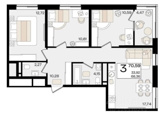 В продаже 3-комнатная квартира от застройщика DOGMA! ЖК REEDS, г. Краснодар, Литер 5 Срок сдачи: 4 кв. 2028, общей площадью 74.9 кв.м., на 7 этаже. REEDS — это синергия городской динамики и природного спокойствия. Закрытая территория, наполненная светом, зеленью и свежестью воды, гарантирует конфиденциальность и приватность. Вас ждёт инфраструктура нового уровня: гастрономические пространства, бутики, фитнес, детские и спортивные площадки. Внутри квартала расположен зелёный бульвар — место притяжения для жителей и гостей REEDS: тенистые аллеи для прогулок, уютные скамейки в зонах отдыха, атмосфера уединения и комфорта. Здесь каждый день начинается с ощущения гармонии и уюта. Архитектурный почерк REEDS Классика в каждой линии и штрихе Архитектурный концепт квартала воплощает самые современные тенденции в проектировании: минималистичный и лаконичный силуэт вашего будущего дома создает атмосферу визуального комфорта, который будет радовать вас каждый день на протяжении многих лет. Это не просто архитектура — это ода стилю, где каждая деталь наполнена смыслом и глубиной. Особый почерк гармонично переплетается с функциональностью, создавая пространство для ценителей эстетики. Мягкая подсветка фасадов подчёркивает геометрию, превращая квартал в живую картину. Архитектура REEDS — это искусство в качестве и красоте, пространство для жизни, наполненное спокойствием и вдохновением. Баланс зелени и камня Жизнь в REEDS — это уверенность в безопасности и ощущение, что этот двор создан только для вас Чистоту архитектурных решений подчёркивает тщательно продуманный рекреационный каркас, объединяющий зелёные прогулочные аллеи, игровые и спортивные зоны. Авторский проект благоустройства прибрежной территории создаёт уникальное пространство, где вы и ваша семья сможете наслаждаться часами безмятежности и гармонии в окружении природы. Стильное лобби Воплощение элегантности и современности, где каждый элемент дышит светом и легкостью Интерьеры REEDS поражают современностью и изысканностью. Терракотовые лифтовые порталы, керамогранит с выразительной текстурой в теплых бежевых и золотистых оттенках,ресепшн, лаунж-зоны, гостевой санузел, удобная мягкая мебель и панорамные окна в просторном вестибюле создают атмосферу легкости и утонченного блеска. Современные IT-решения: Новый уровень безопасности и комфорта REEDS фокусируется на передовых технологиях в стремлении сделать вашу жизнь особенной. - Закрытая территория без машин - IP-домофония и видеонаблюдение 24/7 - Контроль доступа на территорию с технологией BLE - Face-ID - Умный дом Почувствовать вкус жизни Первые этажи домов в REEDS — это пространство для полноценной и изысканной жизни Здесь расположены бутики, гастрономические магазины с деликатесами, магазины, где можно найти всё — от свежих продуктов до стильной одежды и эксклюзивных аксессуаров. Помимо магазинов и ресторанов, работают салоны красоты с профессиональными услугами, современные фитн