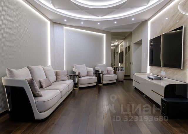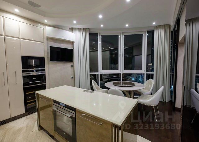 Кухня-гостиная 52 м2, 3 изолированных спальни 22 м2, 16 м2 и мастер-спальня 17 м2. Два отдельных сан.узла и большая гардеробная комната. По всей площади квартиры теплые полы, и шумоизоляция.